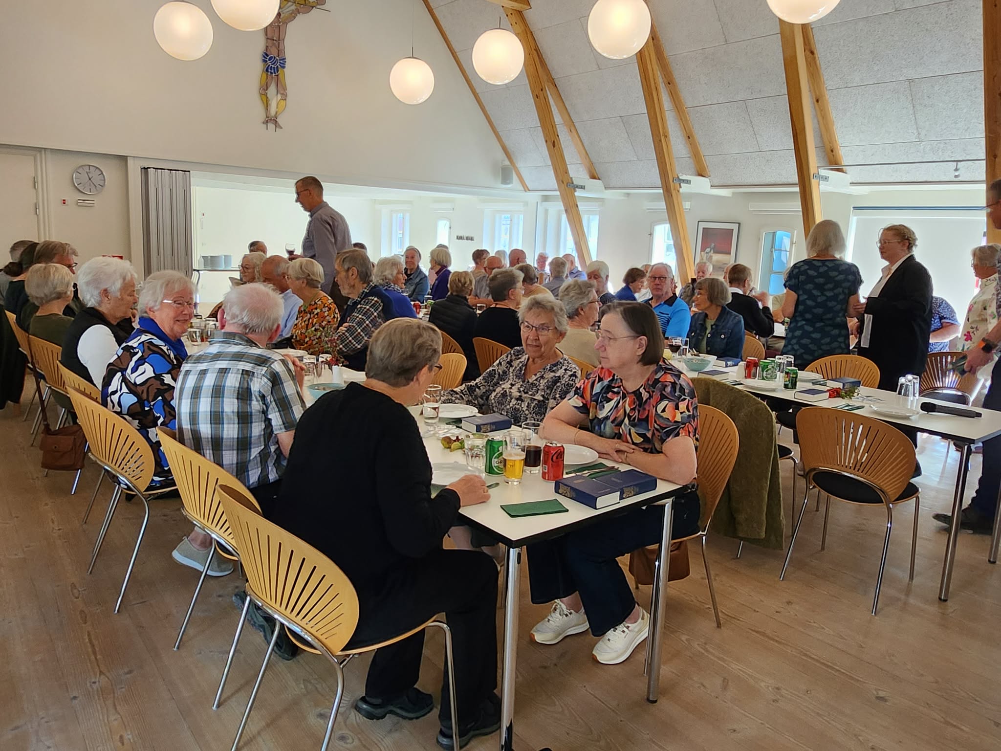 Skt. Hans aften i præstegårdshaven på Bjørnemosen, Provst Poul Geil var aftnens taler og Sax Appeal underholdt 130 mennesker med skøn jazz. Vores store hold af frivillige sørgede for alt det praktiske og sørgede for grillede ringriddere.