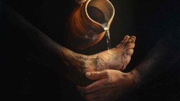 og gør det ved at vaske disciplenes fødder.