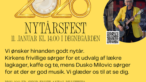 De frivillige serverer lagkage og Dusko Milovic står for musikken. Vi glæder os til en hyggelig eftermiddag og håber du har lyst til at komme og ønske godt nytår.